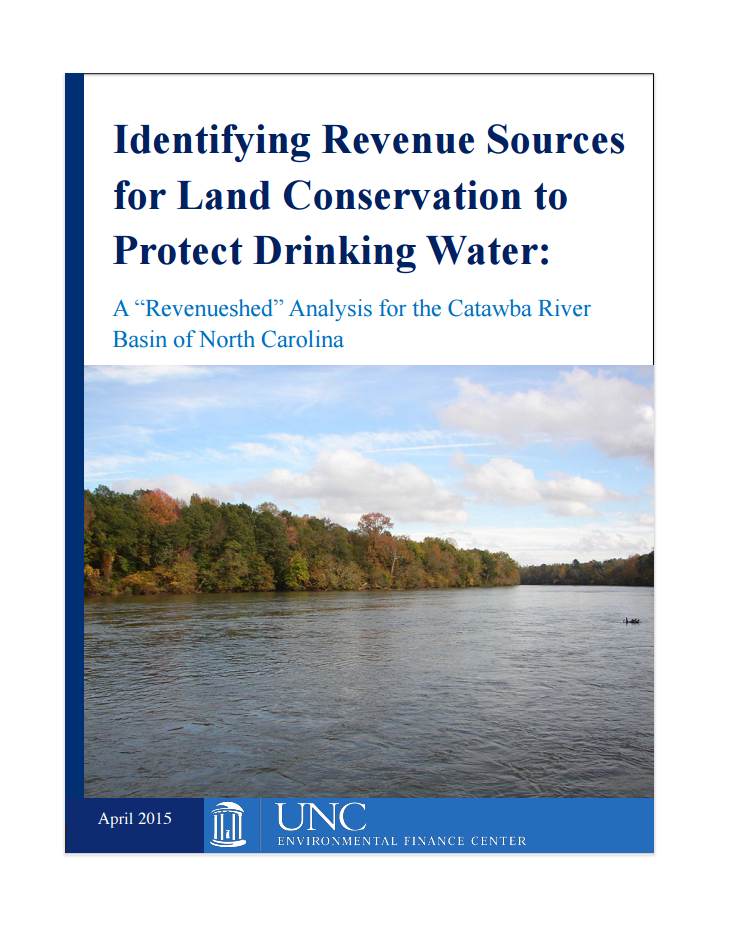 This report examines the potential for generating a cooperative, sustainable revenue stream among the local governments and public utilities in the North Carolina Catawba River Basin for the conservation of watershed lands and implementation of other watershed protection strategies. One of the primary challenges of watershed protection is that jurisdictional and watershed boundaries rarely align. This generates questions about who is responsible, and who should pay, for watershed protection. In this report, the EFC developed and applied the concept of a revenueshed, which is the area within which revenue is generated for watershed protection, in order to address these challenges.